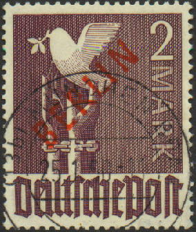 | Die Ausgaben des Postgebietes Berlin gehören fast ausnahmslos in meine Bund-Sammlung. Lediglich die Schwarzaufdrucke (Michel-Nrn. 1-21, Ganzsachen P1, P2) wurden am 31.3.1949 ungültig und konnten somit nicht in der Bundesrepublik Deutschland verwendet werden. Gemeinhin genießen Berlin-Marken mit Berlin-Stempel ein höheres Ansehen, als Berlin-Marken mit Stempeln aus dem Bundesgebiet. Im Sinne dieser Sammlung dokumentiert die Verwendung von Berlin-Marken im Bundesgebiet die Zusammengehörigkeit jedoch viel besser! Einige Stücke sind in dieser Verwendung gar echte Seltenheiten! Die "2 DM Rotaufdruck" diene dazu als Beispiel. Die Besonderheit liegt darin, dass die Verwendung erst ab dem 20.1.1950 erlaubt war und die Gültigkeit bereits am 31.1.1950 endete. Folgende Themen zu Berlin werden (noch) präsentiert: