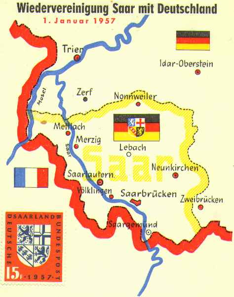 Seit dem 1.1.57 ist das Saarland ein Land der Bundesrepublik Deutschland. Die wirtschaftliche Vereinigung fand erst im Juli 1959 statt. Das spannende an diesem "Mitläufer" meiner Bund-Sammlung ist, dass noch viele Marken aus der Zeit vor 1957 bis zum 30.6.57 bzw. 31.12.58 gültig waren. Mit dem richtigen Stempeldatum gehören sie also zur Sammlung.