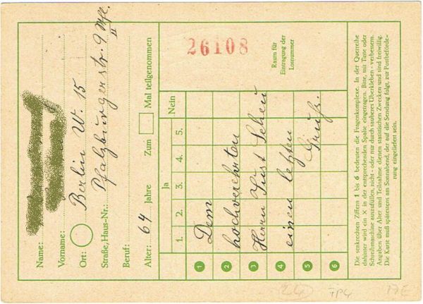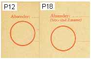 Hier als Beispiele die FP 1 und FP 3: Die unten abgebildete FP 4 weist auf der Rückseite eine Besonderheit auf, denn sie ist nicht "normal" für die Lotterie-Teilnahme ausgefüllt worden. Stattdessen ist ein Gruß vermerkt.