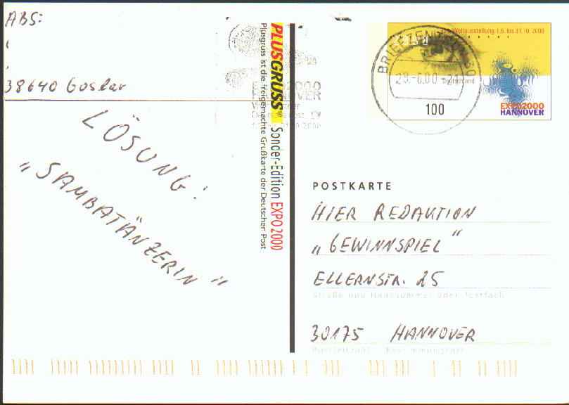 Ich sammle nur die Pluskarten zielgerichtet. Bei den anderen Kategorien nehme ich, was mir so unter kommt. Auf das Warum und Wieso gehe ich bei den einzelnen Kategorien ein. PluskartenDiese Karten zeigen den Aufdruck "PLUSKARTE". Sie haben ein größeres Format (162 x 114 mm) als die Sonderpostkarten (148 x 105 mm). Die erste Karte dieser Art erschien im Oktober 1999 (PSo 60 bzw. E 001):